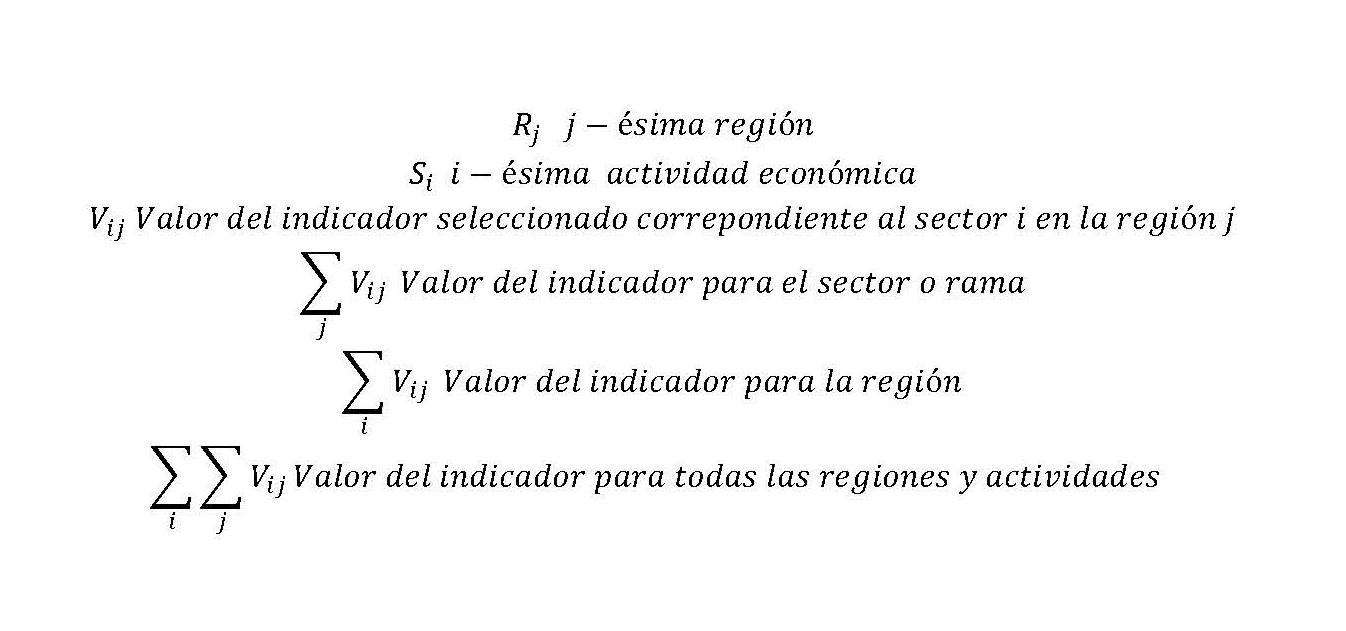 Additional or structural variation (P). It is obtained as a result of the structural composition of the territory; its calculation takes into account the difference between the structure of the territory with the growth of the global rate. It can take values greater or less than zero. In the first case, it indicates that the territory has a specialization in fast-growing sectors at the national level (SRC). In the second case, its specialization is in slow-growing sectors at the national level (SLC).