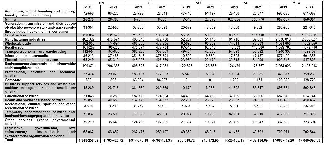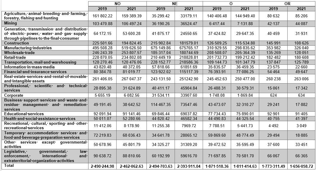 For a more accurate interpretation of the data provided for 2019 and 2021, it is essential to analyze several dimensions of the economic structure of each region.