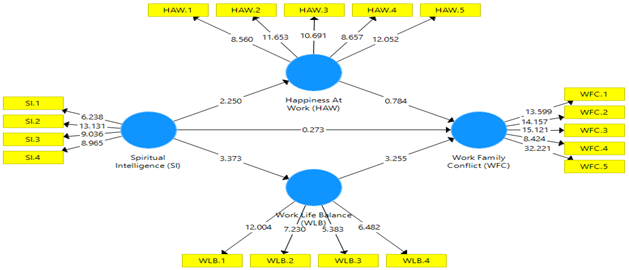 Note. (SI=spiritual intelligence; HAW=happiness at work; WFC=work-family conflict; WLB=work-life balance); * : Significant Result