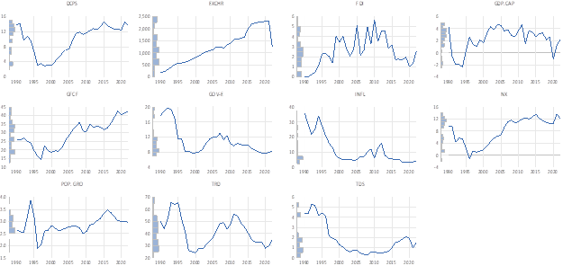 GDP-CAPt=α0(DCPSt)α1(EXCHRt)α2(FDIt)α3(GFCFt)α4(GOV-Et) α5(INFLt)α6(POP-GROt) α7(TDSt)α8µtεt… …... (2)