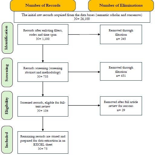 To find relevant articles that would help answer the research question, two AI-powered (Artificial Intelligence) databases were utilized, namely, Semantic Scholar and Consensus. Notably, AI-powered indicates that the database is driven by artificial intelligence, encompassing several machine learning mechanisms. Semantic Scholar is a free AI-powered research tool for scientific literature developed at the Allen Institute for AI. It uses advances in natural language processing, machine learning, and machine vision to provide summaries, highlights, and insights for scholarly papers. Consensus is also a free AI-powered search engine that helps you find answers and insights in scientific research papers. one can ask questions about any topic and get conclusions from peer-reviewed studies while also providing summaries, highlights, and analysis of the papers. Both these online tools index over 200 million academic papers sourced from publisher partnerships, data providers, and web crawls. According to their websites, they have partnerships with over 50 publishers and scholarly societies, including Elsevier, Springer Nature, IEEE, ACM, PubMed, arXiv, and many more.