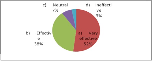 Effectiveness in achieving objectives: as we can see from chart 12, half of the respondents (52%) rated digital marketing efforts as very effective in achieving SMEs' business objectives, while 38% considered them effective. On the other hand, around 10% do not have a positive opinion. Figure 6 shows the pie chart of the effectiveness in achieving objectives.