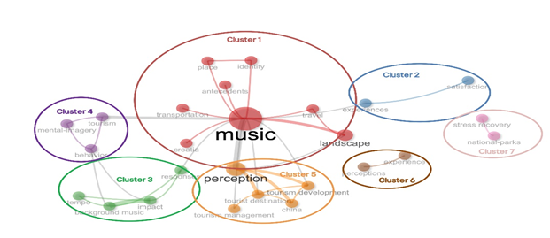 A significant number of articles focus on experiential marketing, particularly examining atmospheric sounds and behavioural responses in both domains. Specifically, “background music” emerged as the most frequent term in the marketing domain, while “music” was the main in the tourism field. The relationship between music and tourism has recently been assessed by Moreno-Lobato et al. (2023), highlighting the importance of emotions in conjunction with music elements and tools, with an increase in interest over the past decade. Research within the analysed clusters in both domains directly relates to consumers’ responses and perceptions, encompassing concepts such as memory, gender, tempo, and mood in the marketing field, and factors like authenticity, identity, and tourism development in the tourism domain (RQ3).