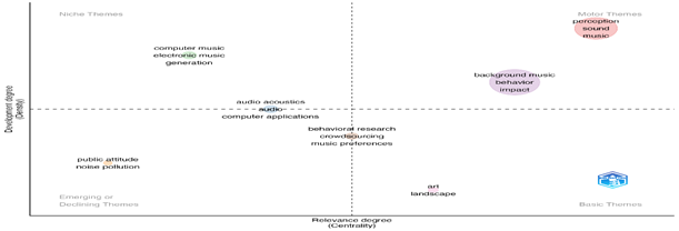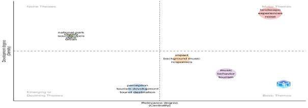 The trend of scientific production related to the discipline in both domains indicates a growing interest in sound, music, and perceptions within the marketing field, and landscapes, experiences, and noises within the tourism marketing domain (RQ4). This highlights the importance of advancing knowledge in sensory marketing, with a particular focus on the sense of sound.