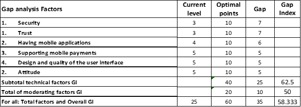 This research approach is limited to the four technological factors and the two moderating factors, as well as it applies to Jordan. Other studies may introduce more and different factors and their interrelationships. Then, the research methodology of this paper can be used to come up with the different gap indexes.