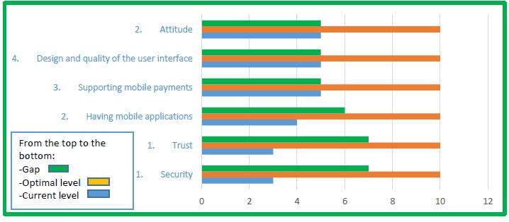 This study introduced an innovative methodology to assess a country’s preparedness for eTourism by employing gap analysis and conducting a systematic assessment based on a framework derived from existing scholarly literature. The utilization of the gap analysis method in conducting comprehensive systematic reviews is substantiated by a wealth of literature derived from several articles and various countries. Furthermore, the incorporation of Jordanian references and practices was included throughout the discourse, providing insights into the most effective and current condition of eTourism in Jordan. The study found that security and trust exhibited the most significant gaps, with a magnitude of 7 on a scale of 10, as assigned by the authors. In a related research on the use of e-commerce in Dubai, UAE, the author cited security concerns, as supported in this study, that impede the adaptation of e-commerce by travel agents (Zaidan, 2016). The gaps in attitudes, user interface design, and mobile payment support were approximately equivalent. In a related research areas, authors highlighted the importance of website quality, as highlighted in this study, to achieve positive customers’ perception of product quality and enhance their purchase intentions (Wells et al., 2011).