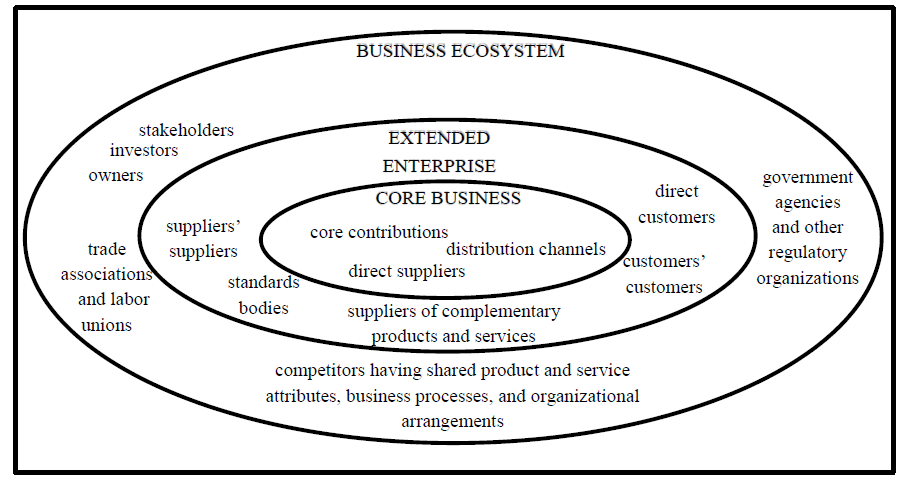 Peltoniemi, M., & Vuori, E. (2005). Business ecosystem as a new approach to complex adaptive business environments. Frontier of e-business research, Tampere, Finland.