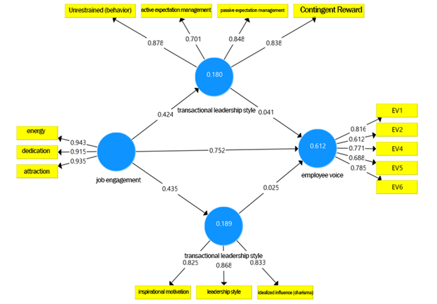 Job engagement -> Transactional Leadership Style -> Employee Voice |