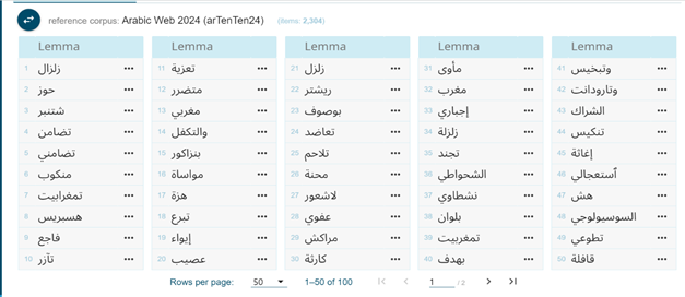 Using the Sketch engine tool (2304), keywords from Moroccan news reports were extracted by comparing the self-built corpus with Arabic Web 2024 (ar Ten Ten 24). However, this study focuses mainly on adjectives and nouns rather than linguistic features. This article examined keywords to reveal how Moroccan newspapers fostered solidarity and nationalism among Moroccan citizens during the "Al-Hawz Earthquake" natural disaster. This required an in-depth qualitative analysis of keywords, offering concordance lines to reveal why they appear in Moroccan news reports. The keyword analysis in this article will focus on more noteworthy nouns and adjectives, as listed in Figure 1.